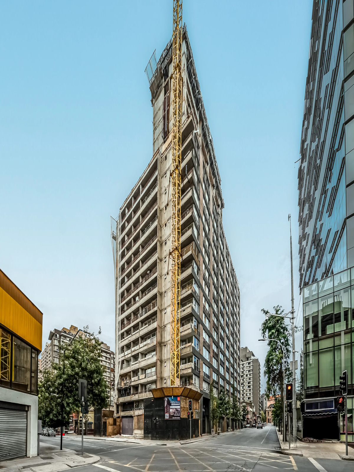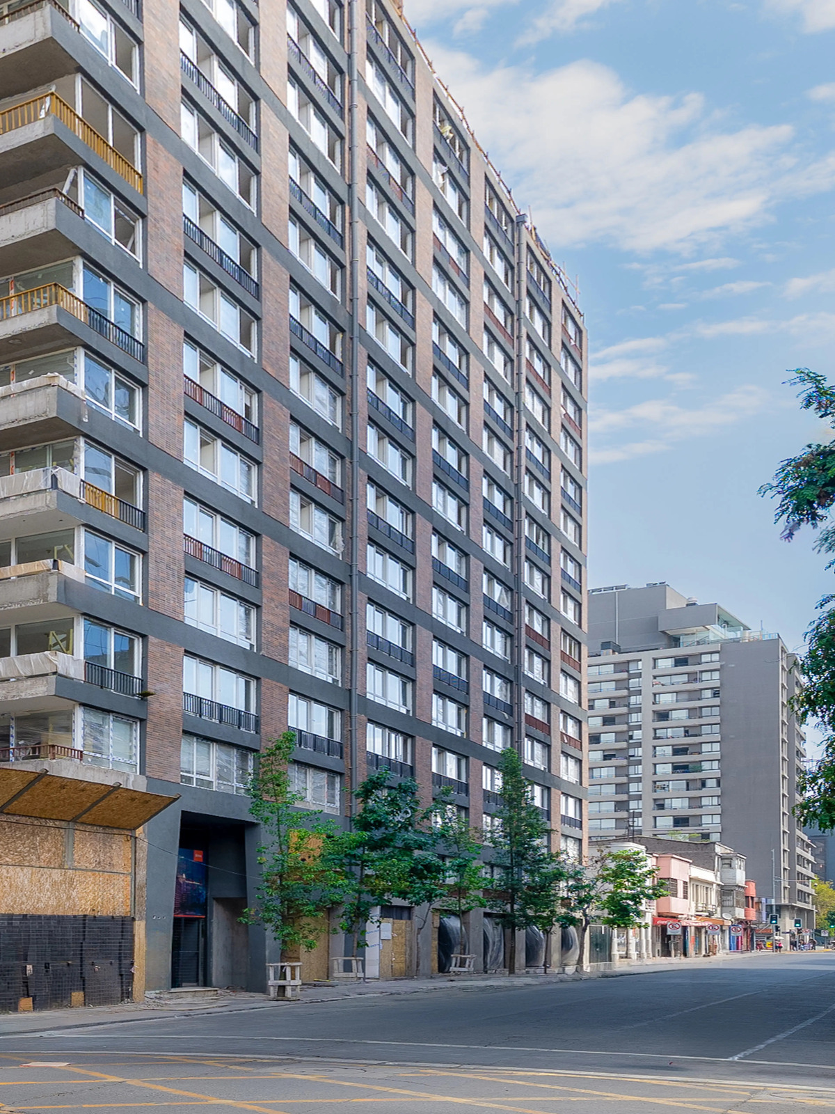 Ubicación: Morande 808, Santiago. Bajo edificio habitacional con + 300 departamentos.